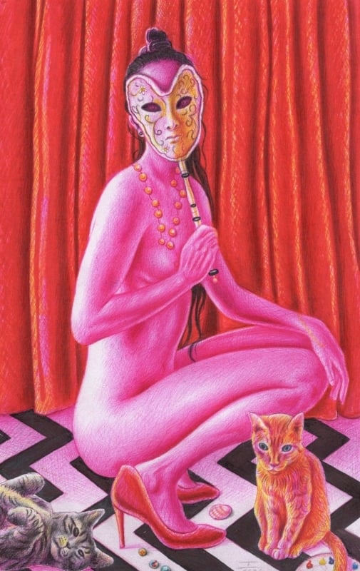 Fig.982 "Boundless Devotion" (2026) by JC Bravo. A ballpoint pen drawing inspired by the work of the David Lynch.